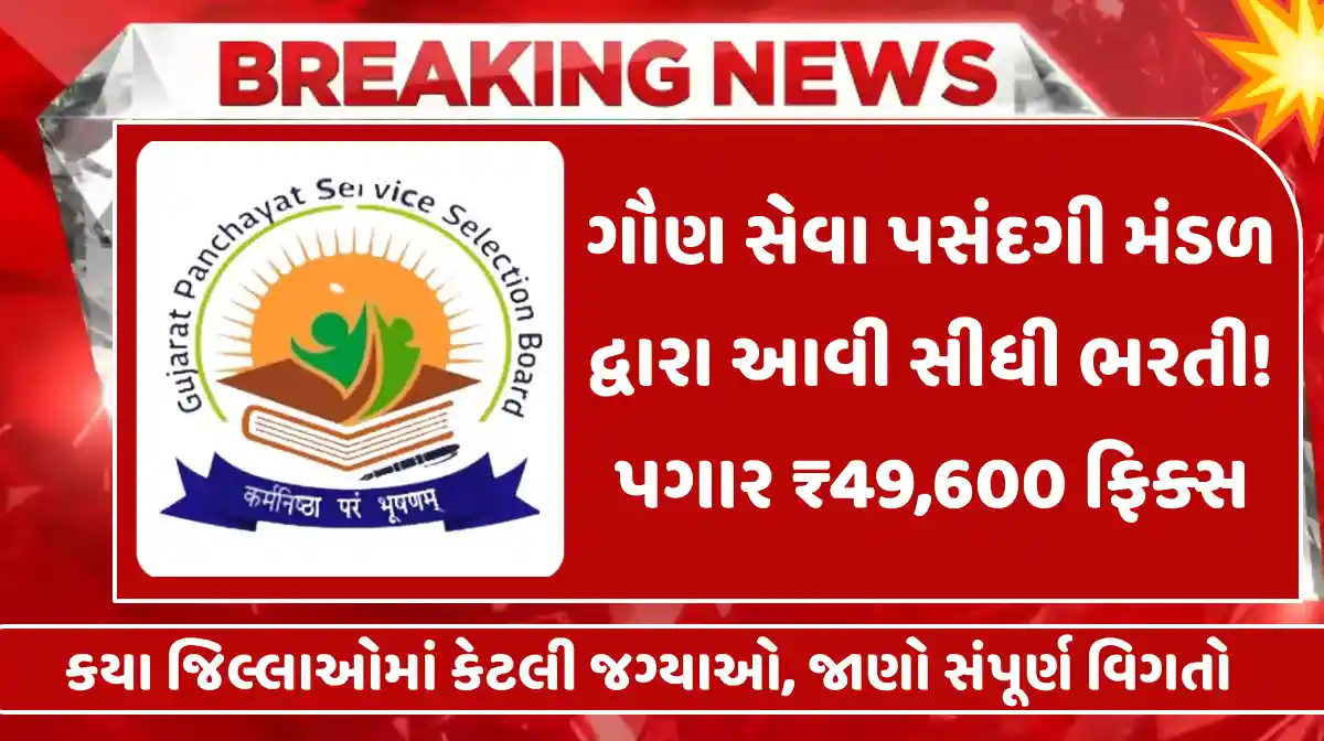 ગૌણ સેવા પસંદગી મંડળ દ્વારા આવી સીધી ભરતી! પગાર ₹49,600 ફિક્સ – GPSSB AAE Civil Bharti 2025